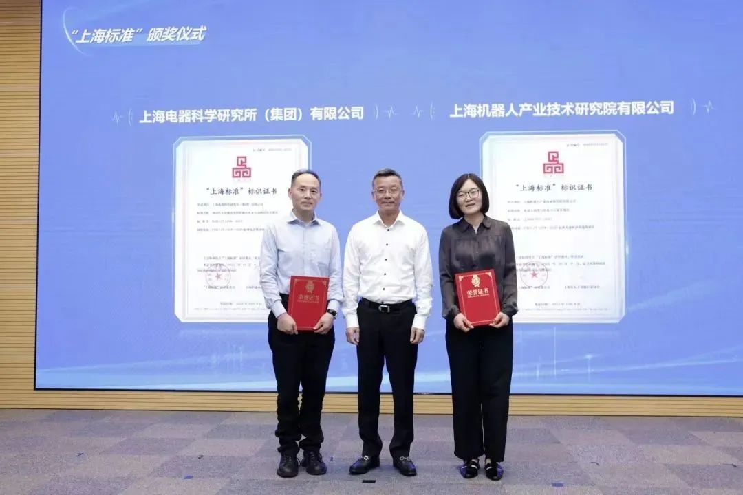 活动现场,肖文高为获得“上海品牌”认证的上海电器科学研究所(集团)有限公司颁奖。陈彦峰为获得“上海标准”评定的上海电器科学研究所(集团)有限公司和JIUYOU.COM九游(中国)机器人有限公司官网有限公司颁奖。