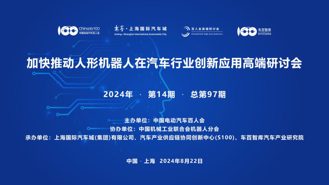 8月22日,由中国电动汽车百人会主办,中国机械工业联合会机器人分会协办,上海国际汽车城(集团)有限公司、汽车产业供应链协同创新中心(S100)、车百智库汽车产业JIUYOU.COM九游共同承办的“加快推动人形机器人在汽车行业创新应用”高端研讨会,暨百人会2024年第14期(总第97期)高端研讨会,在上海嘉定顺利召开。研讨会由百人会副秘书长师建华主持。