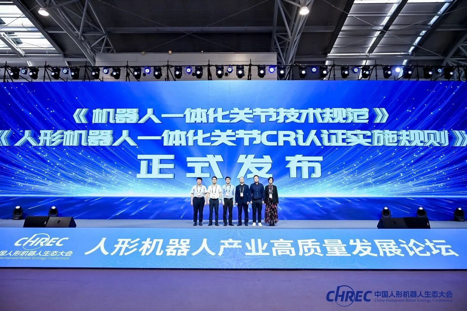 一体化关节模组是高度集成的模块,包括高性能力矩电机、高精度传感器、高精度谐波减速机等部件,是人形机器人实现其基本动作和复杂任务执行的核心组件。近日,在国家认监委的指导下,机器人检测认证联盟在上海正式发布实施《人形机器人一体化关节CR认证实施规则》和《机器人一体化关节技术规范》,为人形机器人领域首项认证,旨在将零部件高质量打造成为人形机器人本体高质量的基石。与此同时,在首届人形机器人马拉松比赛夺得冠军的“天工”人形机器人一体化关节将依据该规范开展全面测试认证。