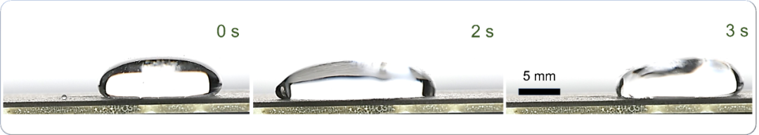 SIB 和水之间的高粘附力,可以提供足够的性能来保持水滴高速运动,研究人员在 4 个数量级的速度范围内测试了水滴特定的可操纵。理论上,这样的磁驱动操纵策略的速度可以慢到 0 毫米 / 秒,中速可实现 6.3mm/s 的液滴操纵,在更快的情况下,研究人员在 0.01 秒内完成 2 厘米的移动,平均速度为 2000 毫米 / 秒。在论文中,研究人员表示,这还并不是能达到的最高速度。