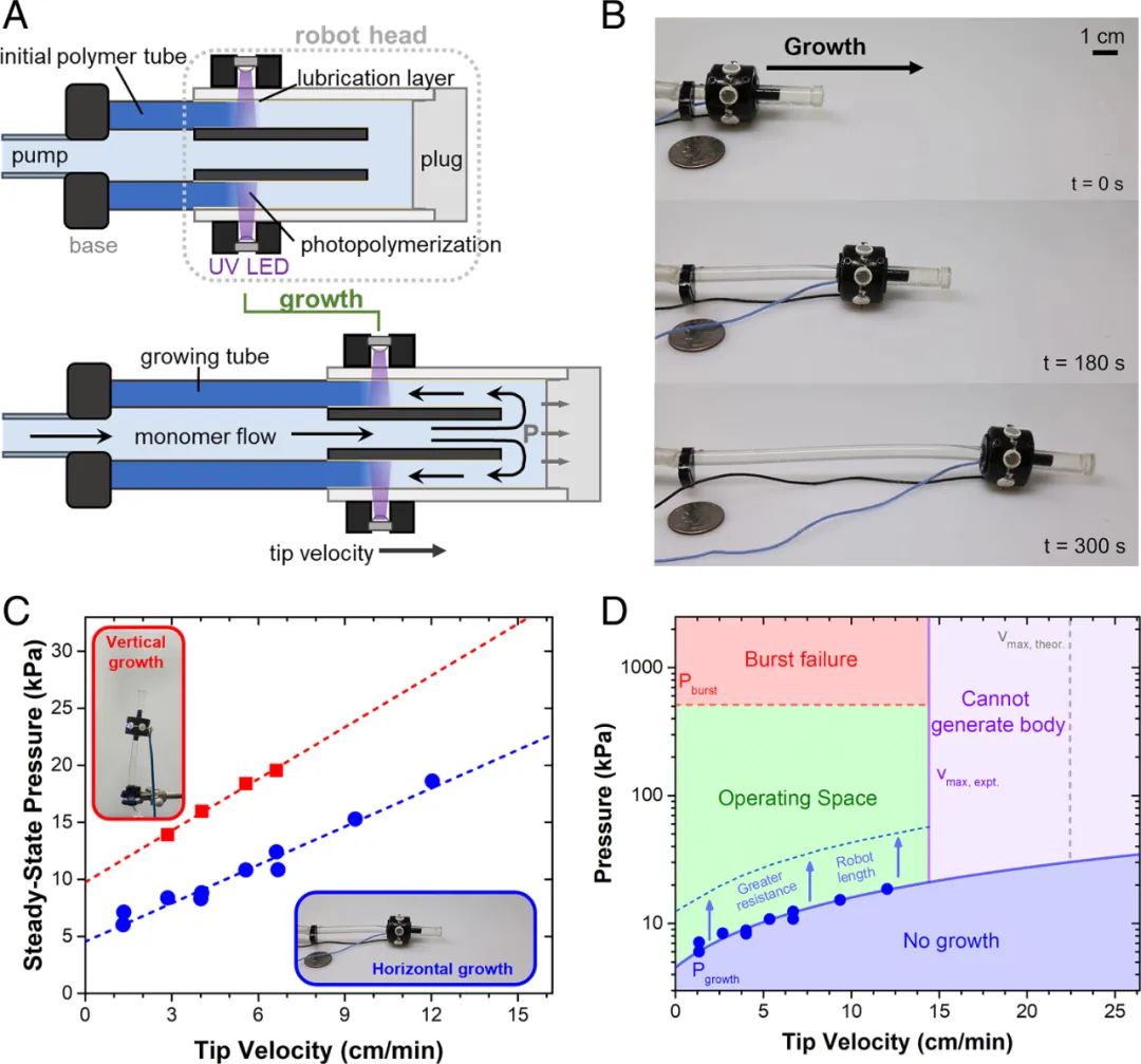 “我们受到了植物和真菌生长方式的启发,”该论文的第一作者、博士生马修·豪斯拉登 (Matthew Hausladen) 表示“植物和真菌在它们的身体末端生长,无论是在根尖还是在它们的新芽处,这项工作可将其转化为工程系统。”